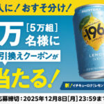 -196無糖 ダブルレモン<チューハイ>コンビニ無料引換クーポンが63万名様にその場で当たる!サントリーのLINE・X懸賞「#どかーんホームランチャレンジ」キャンペーンが開催されていました。