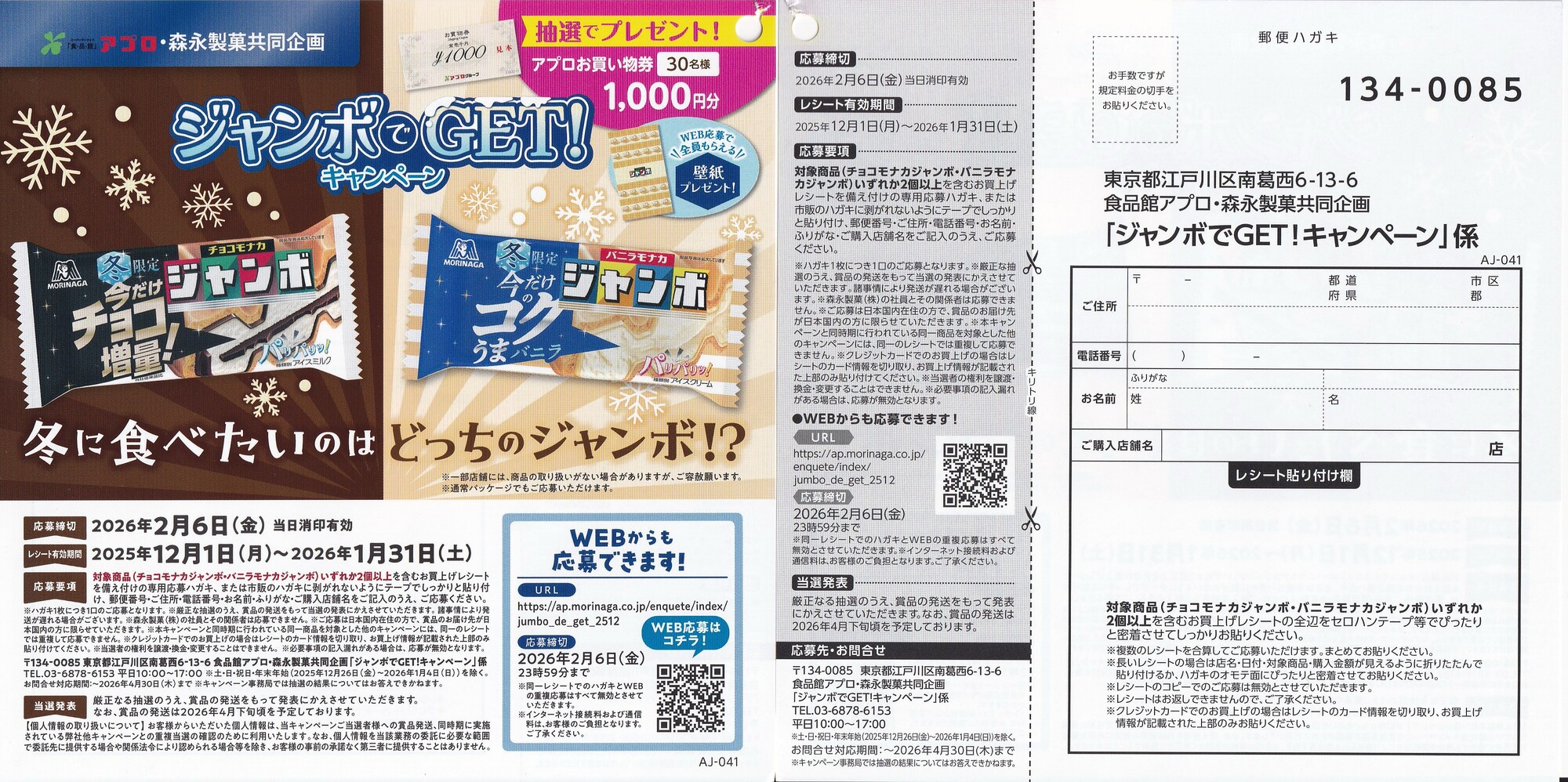 森永製菓×対象店舗のクローズド懸賞「ジャンボでGETキャンペーン」のご紹介です。