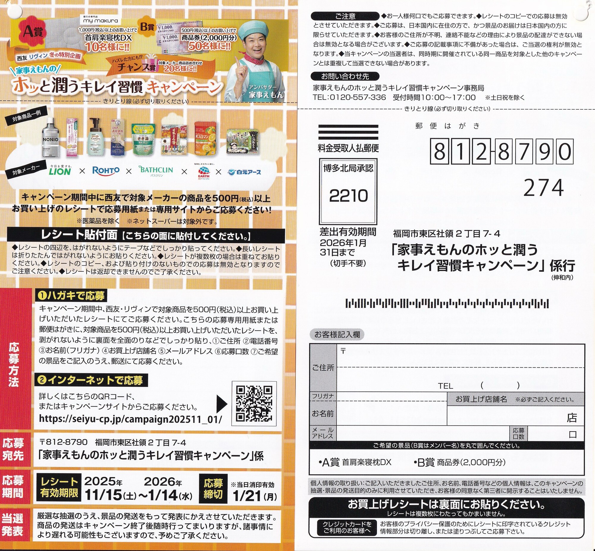 「家事えもんのホッと潤うキレイ習慣キャンペーン」係(㈱伸和内)