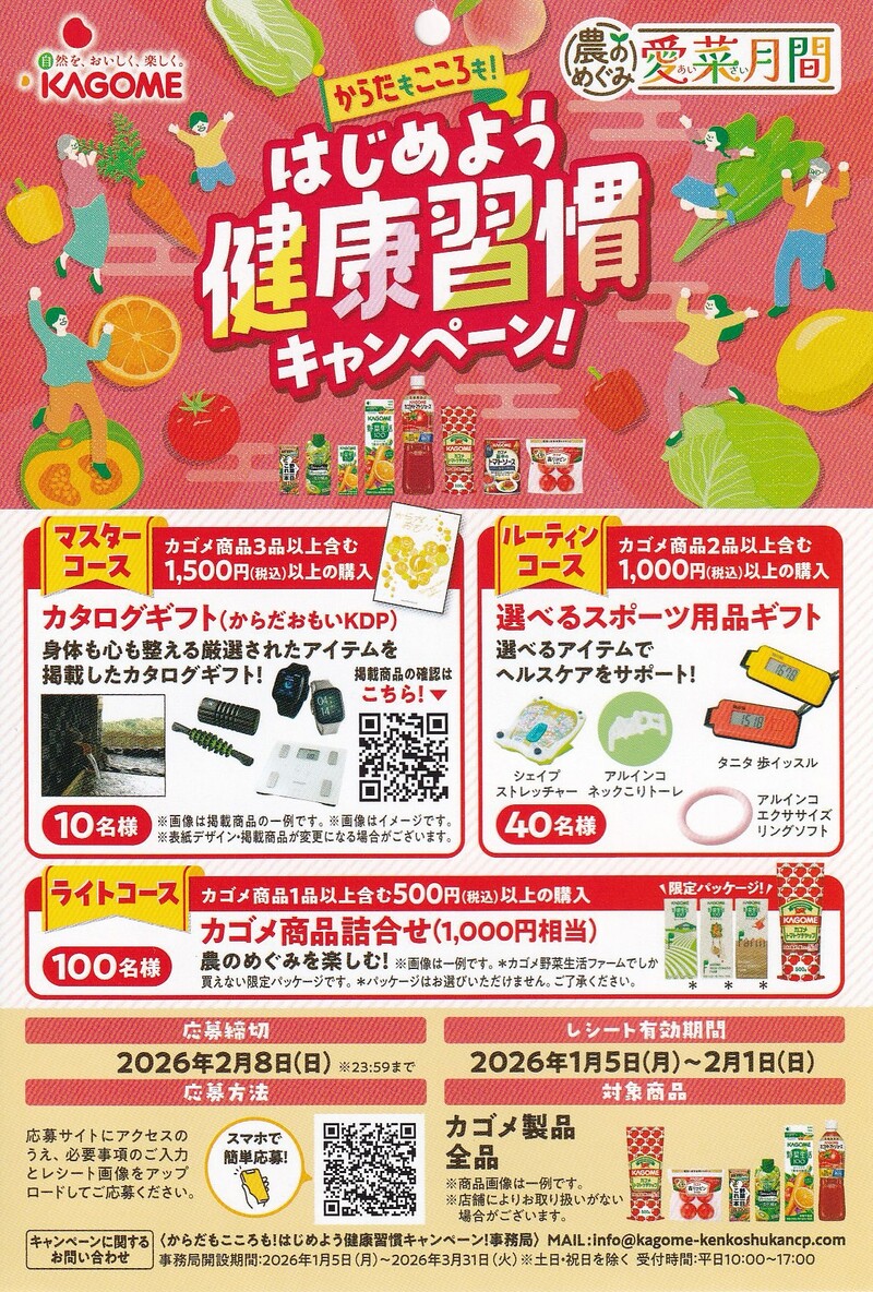 カゴメ×全国対象店舗のクローズド懸賞「からだもこころも!はじめよう健康習慣キャンペーン!」が開催されていました。
