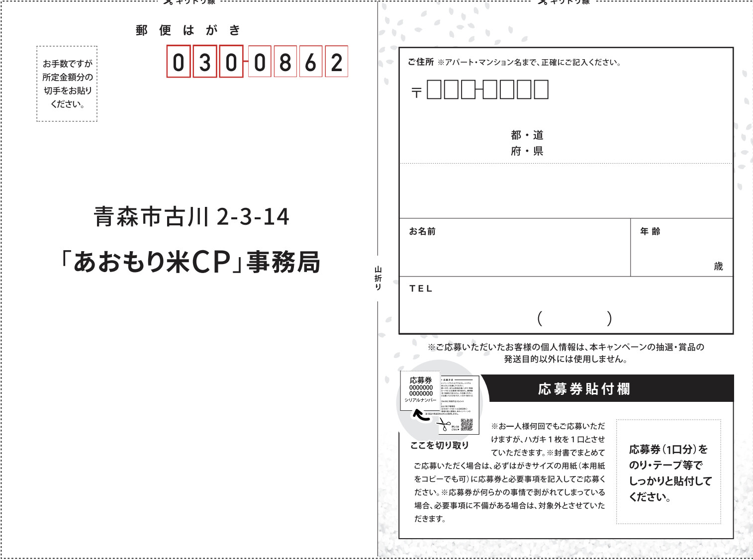 対象商品(青森県産米) を応募シール1枚でWEBまたはハガキ応募できます。