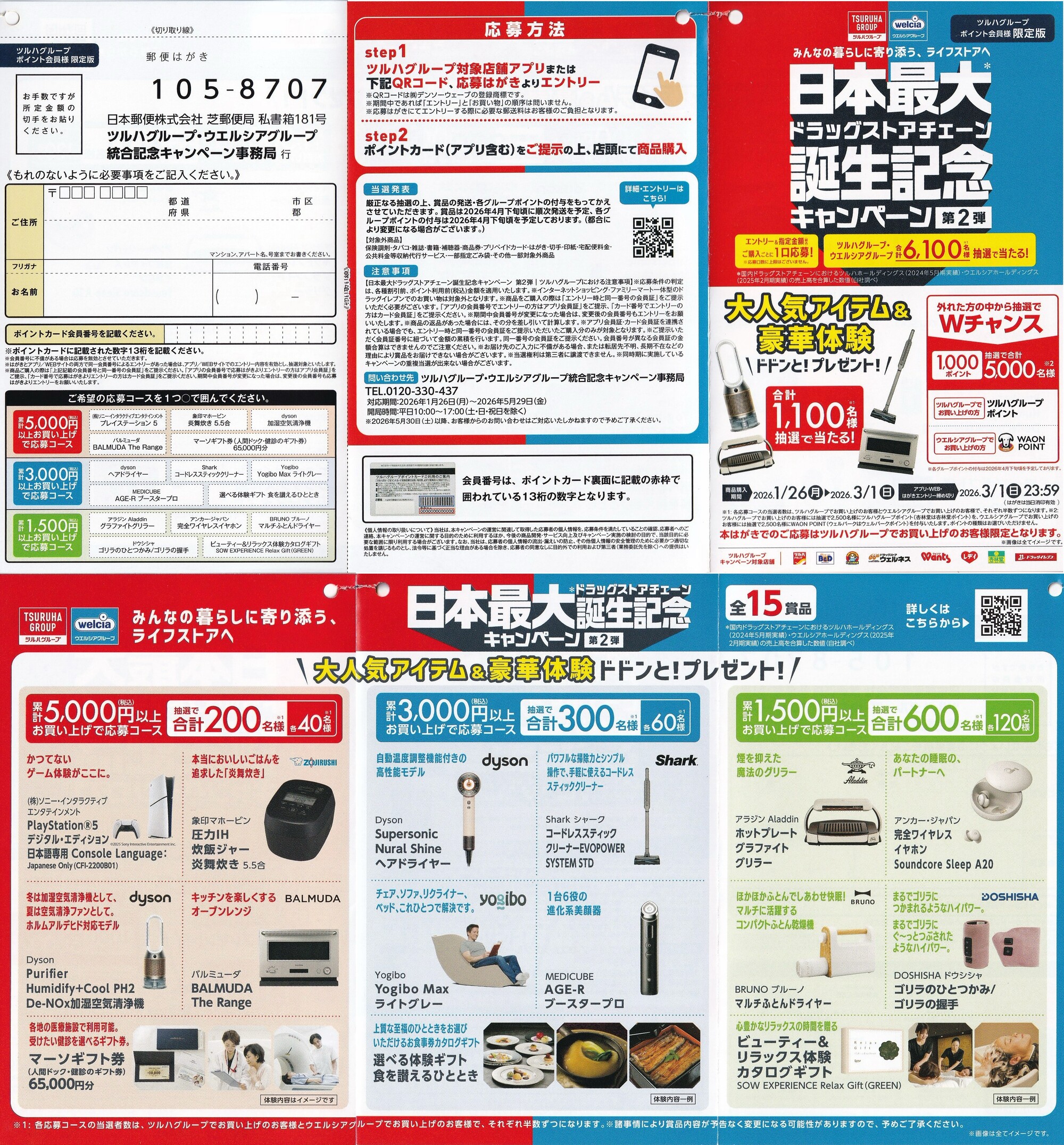 ツルハグループのクローズド懸賞「日本最大ドラッグストアチェーン誕生記念キャンペーン第2弾」のご紹介です。