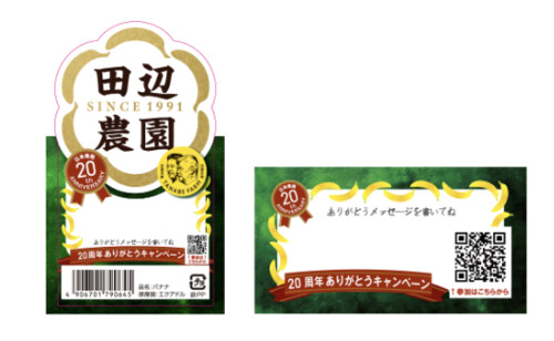 田辺農園バナナのクローズド懸賞「日本発売20周年ありがとうキャンペーン」のご紹介です。