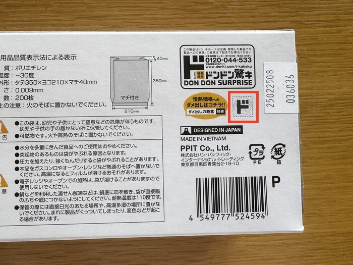 - 「ド」マークは商品パッケージの裏面や底面についています。