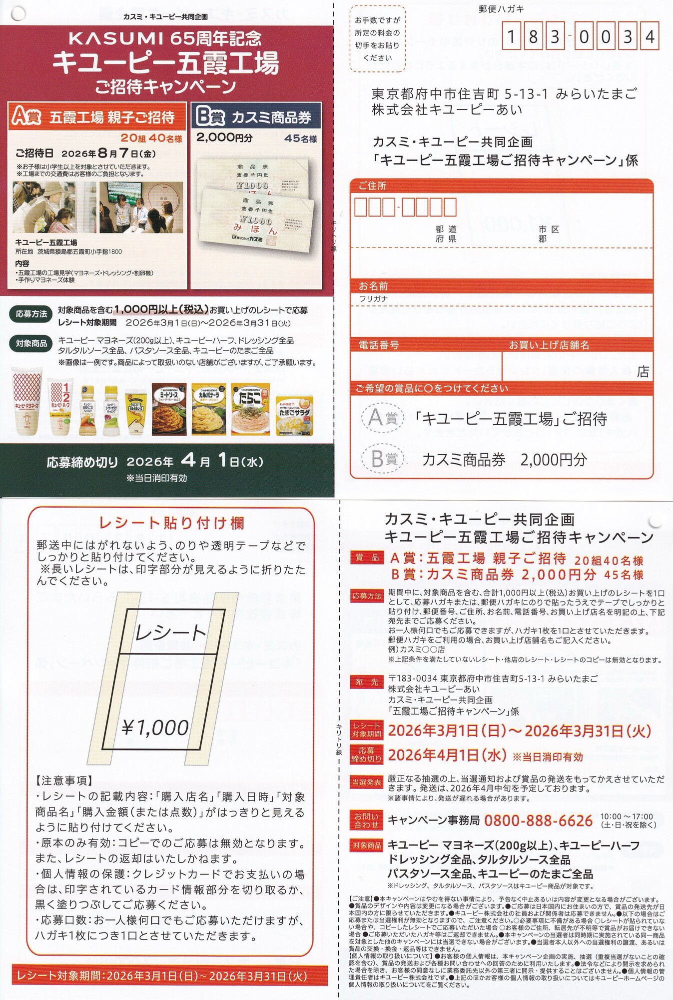 カスミのスーパー店頭でみつけた懸賞ハガキ一覧です。