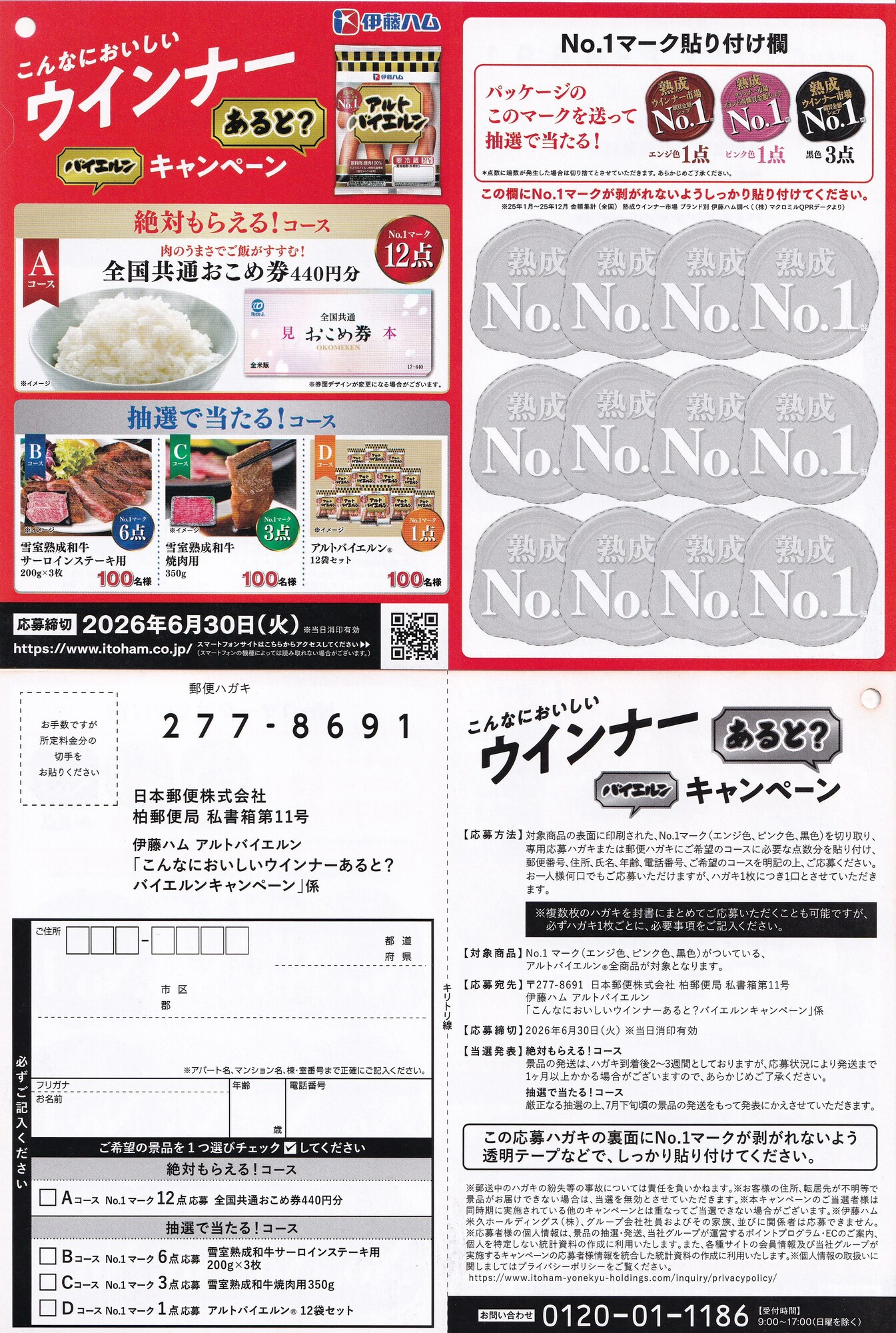 伊藤ハム アルトバイエルンのクローズド懸賞「こんなにおいしいウインナーあると?バイエルンキャンペーン」のご紹介です。