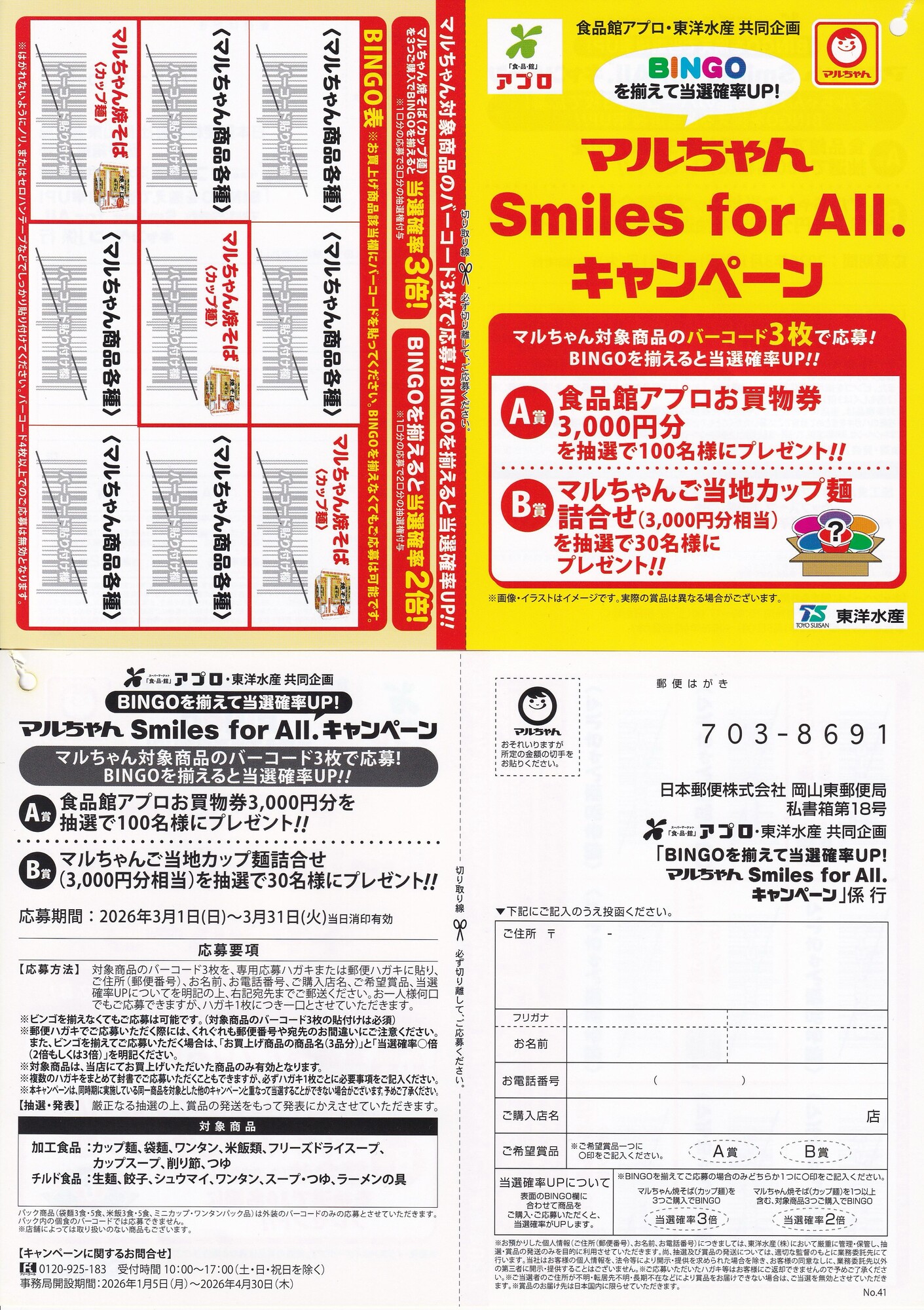 BINGOを揃えて当選確率UP!マルちゃん Smiles for AIl. キャンペーン