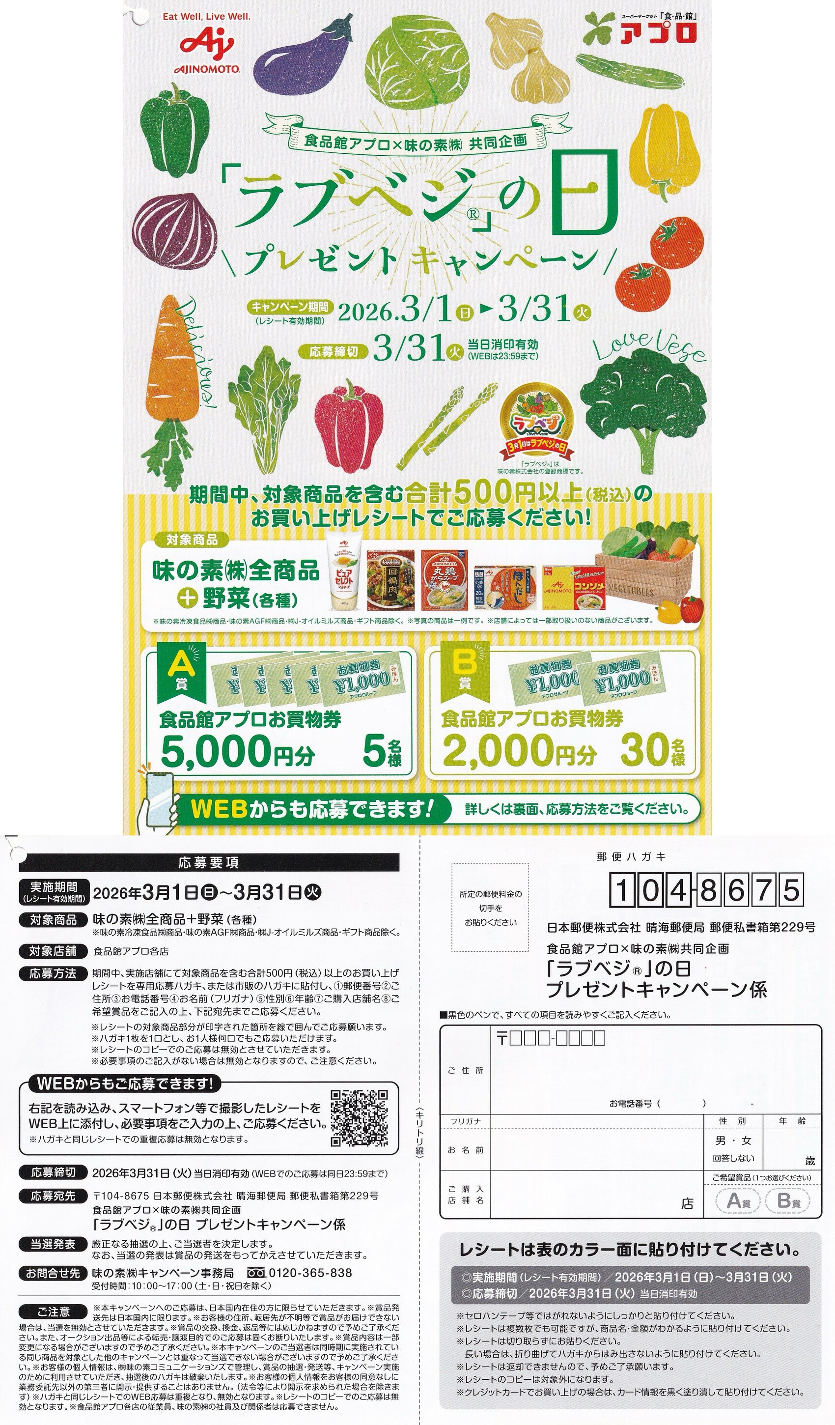 食品館アプロのスーパー店頭でみつけた懸賞ハガキ一覧です。
