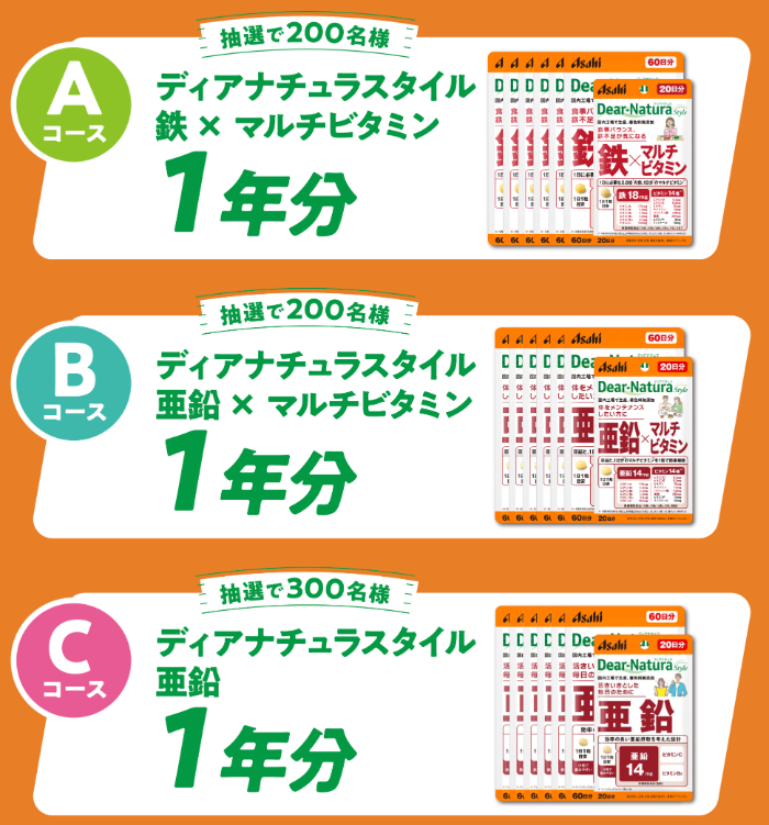 アサヒグループ食品のクローズド懸賞「きっかけはディアナチュラキャンペーン 第1弾」のご紹介です。