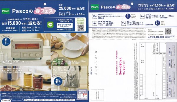 パスコ Pascoの春フェス 懸賞ハガキ 宛先