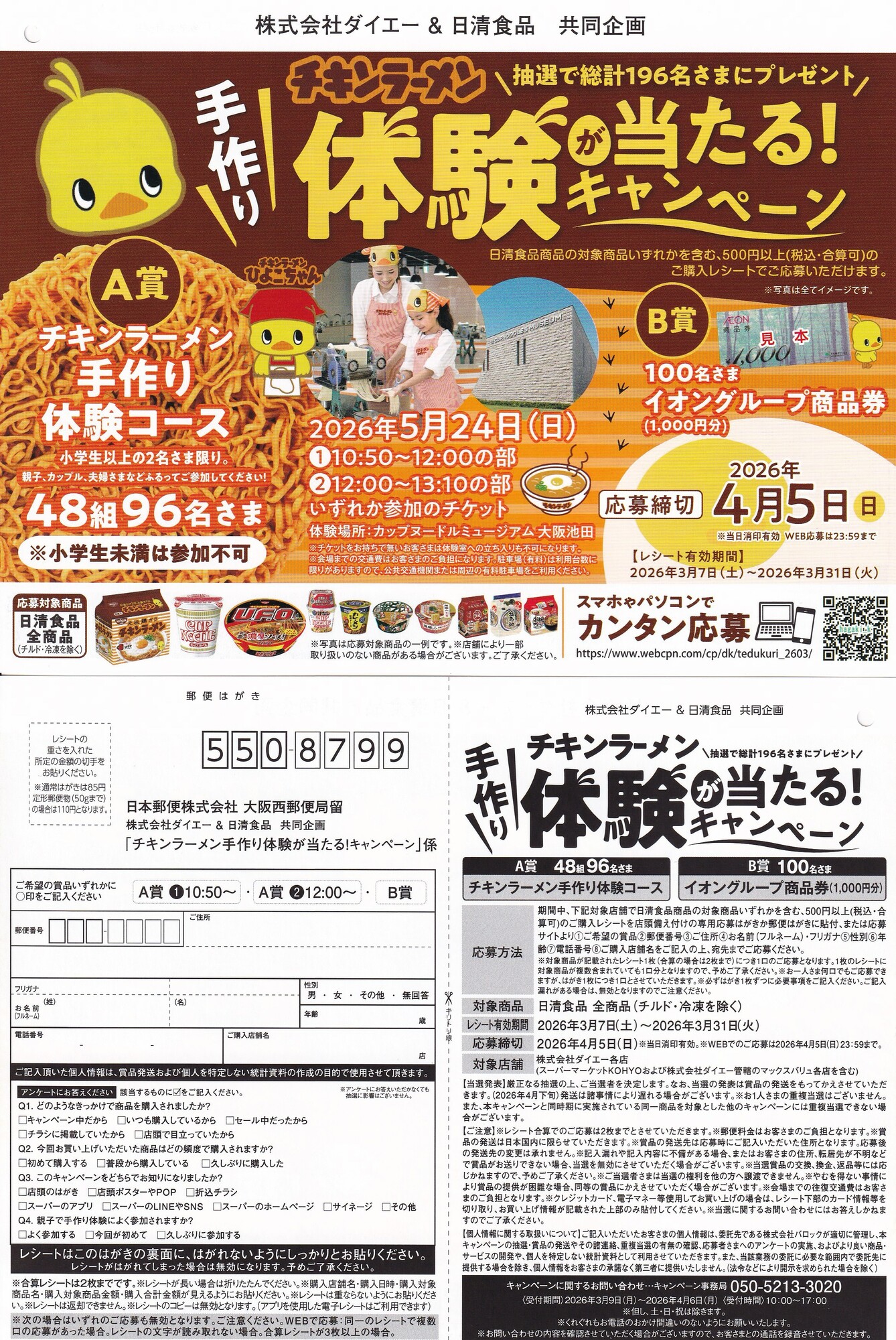 2026年3月のダイエーの懸賞情報を一覧で紹介しています。