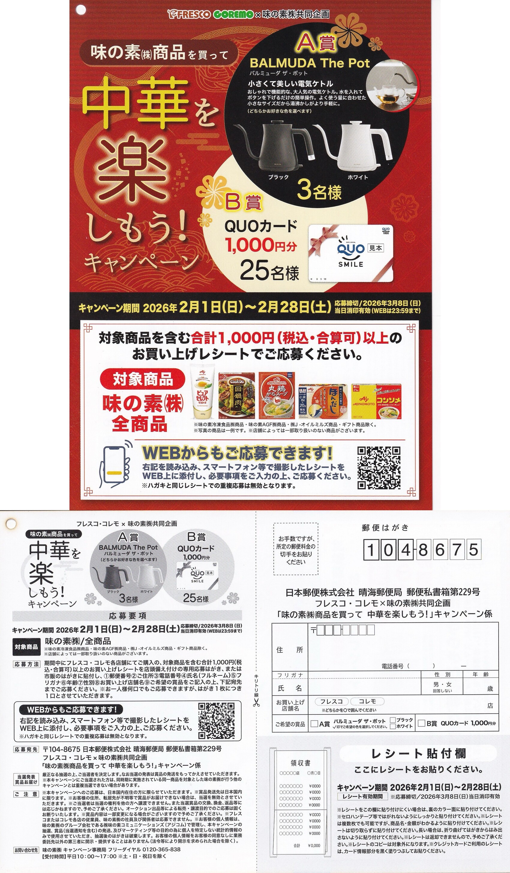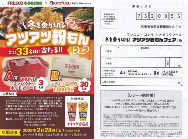 2026年2月のフレスコ、コレモの懸賞情報を一覧で紹介しています。