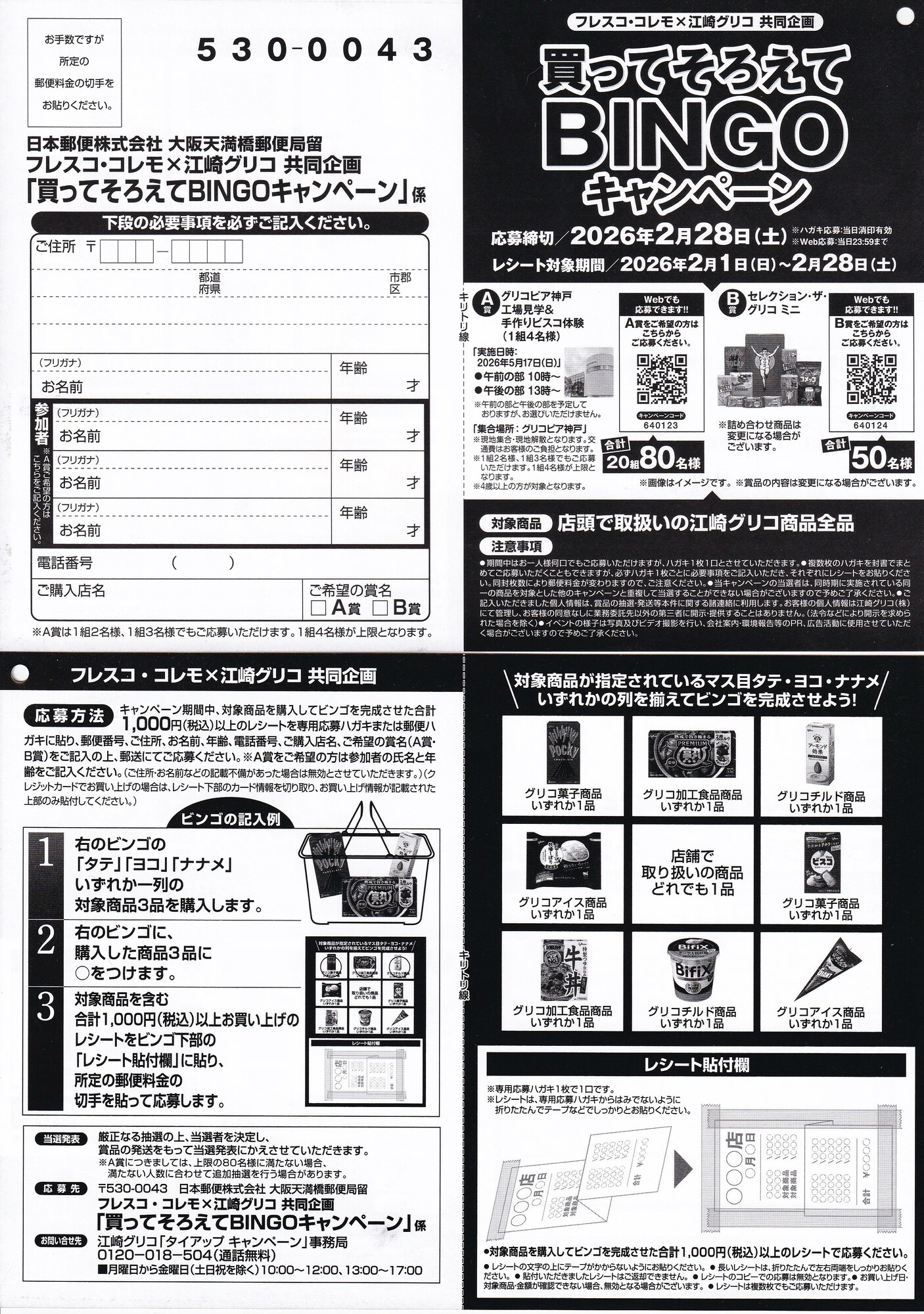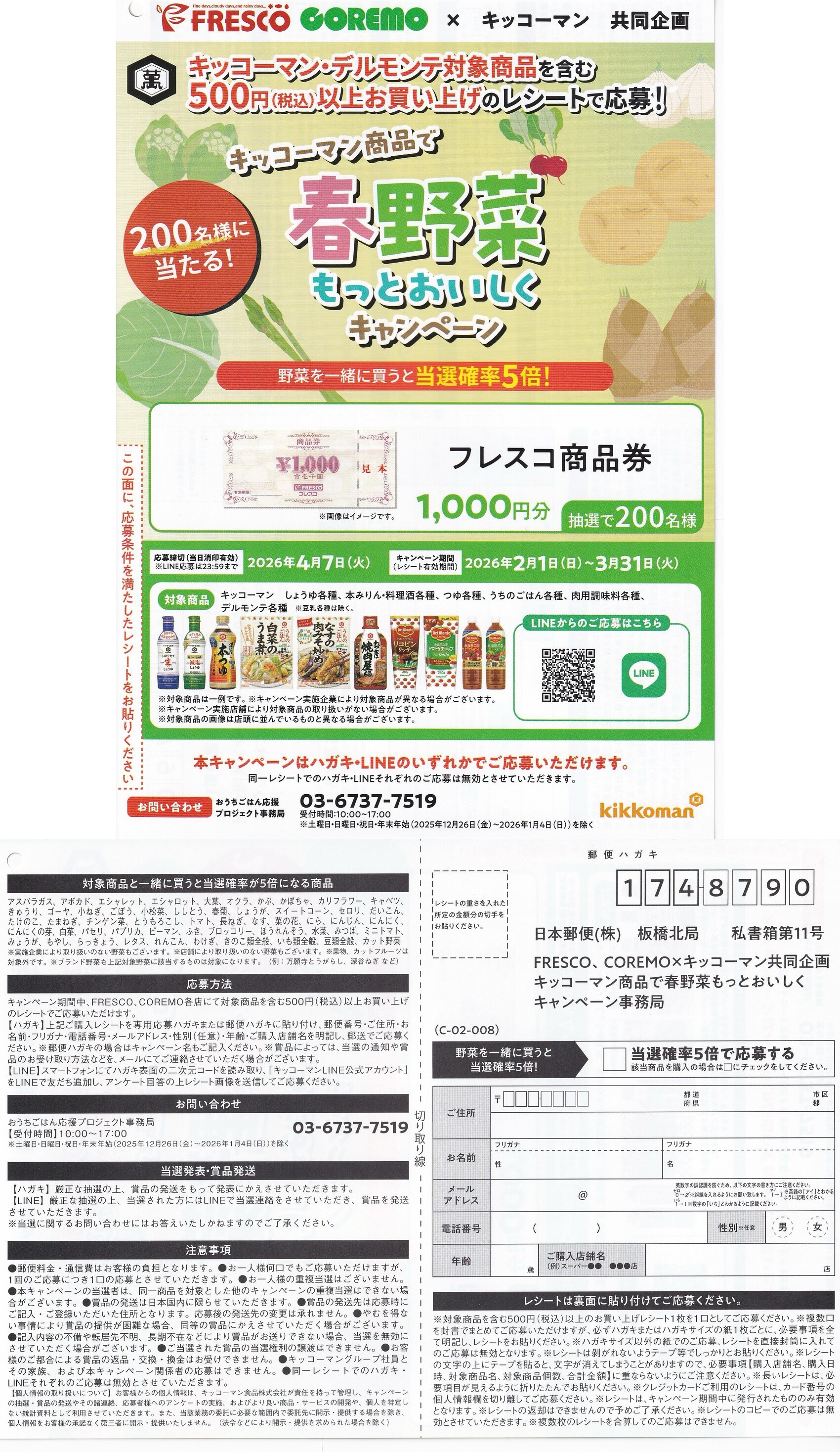 フレスコのスーパー店頭でみつけた懸賞ハガキ一覧です。