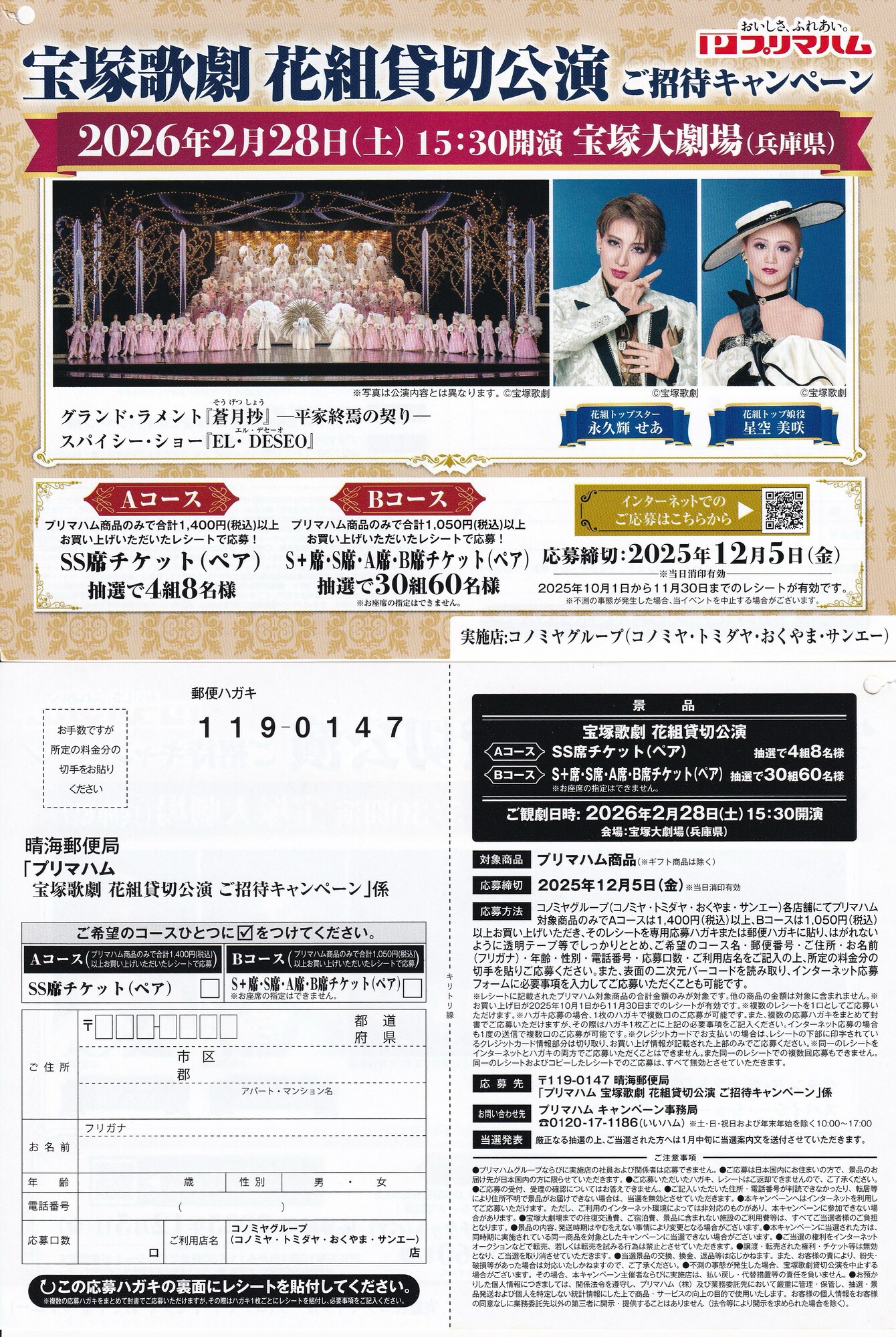 プリマハム 宝塚歌劇 花組貸切公演 ご招待キャンペーン