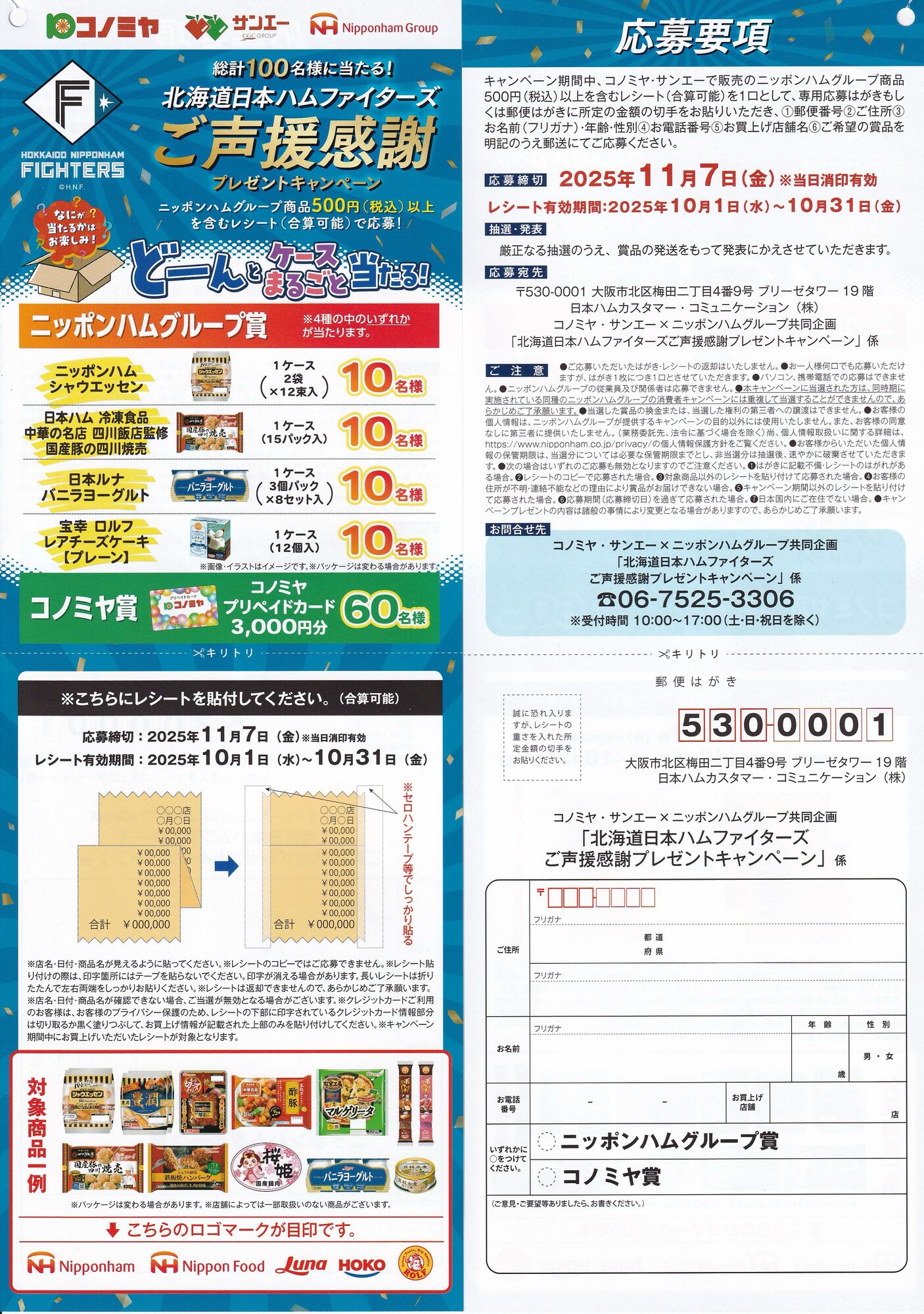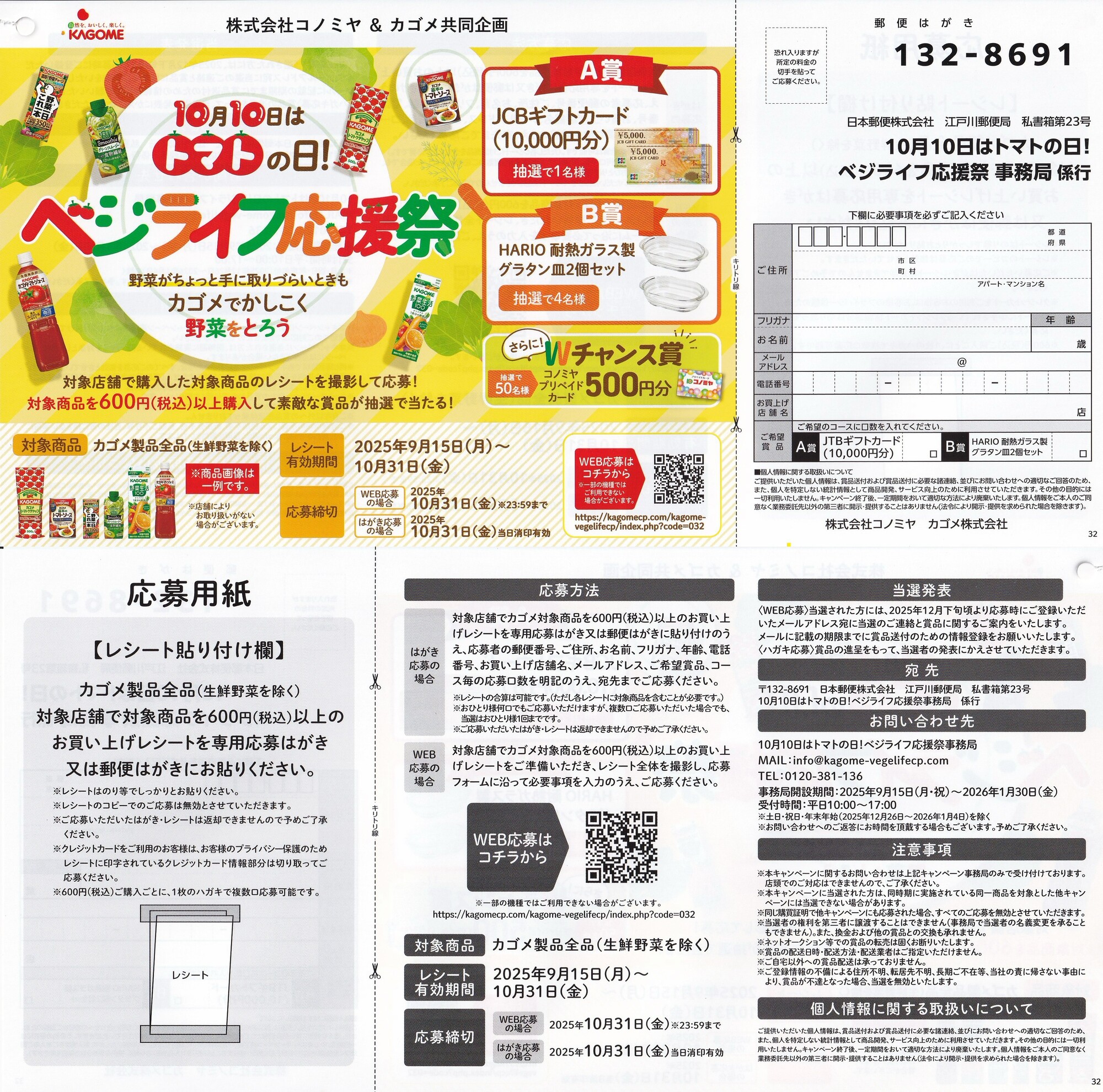 2025年10月のコノミヤの懸賞情報を一覧で紹介しています。