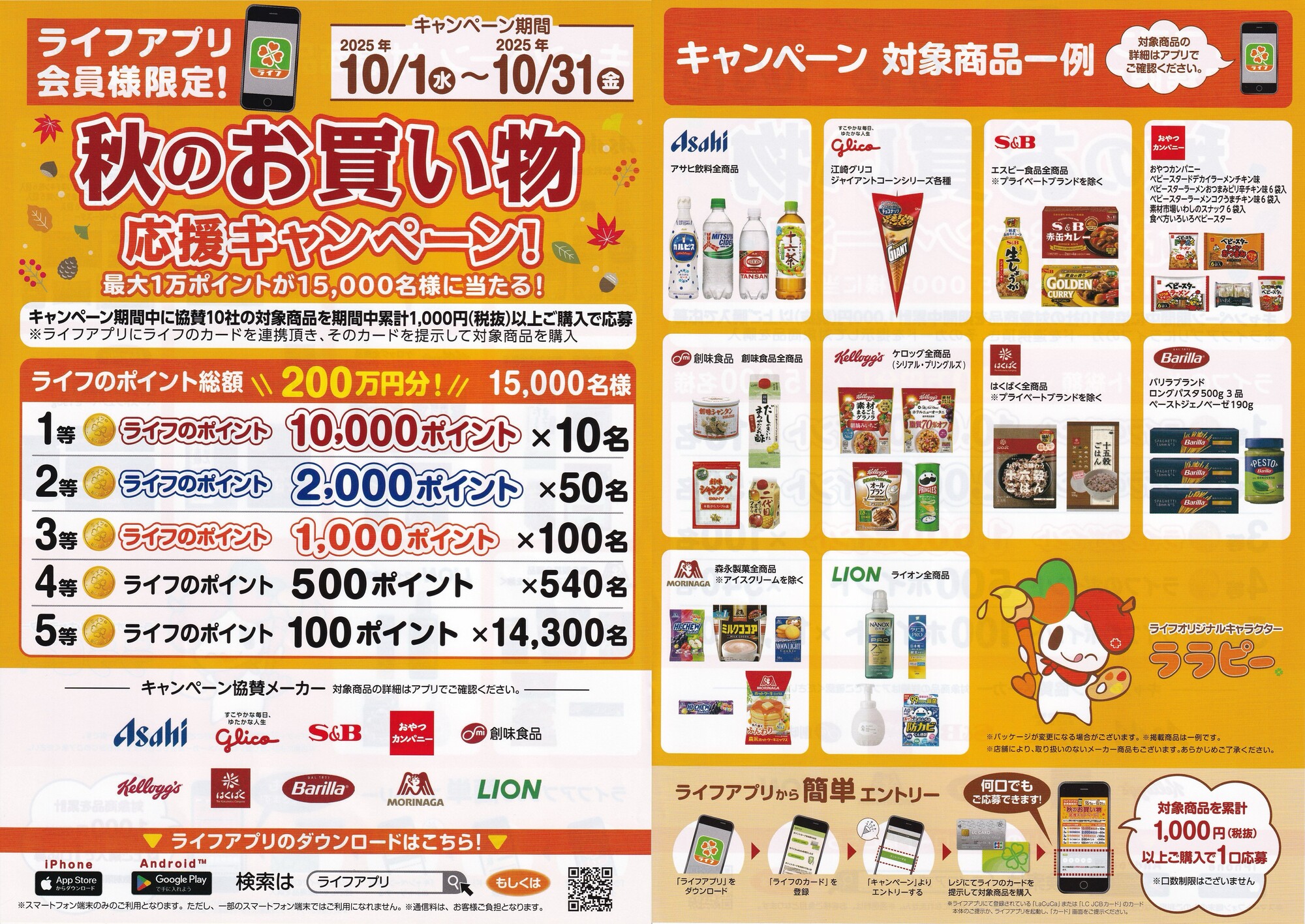 ライフアプリ会員限定 秋のお買い物応援キャンペーン
