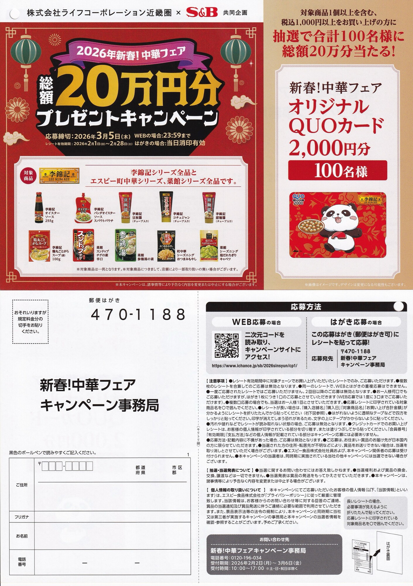 2026年2月のライフ近畿の懸賞情報を一覧で紹介しています。