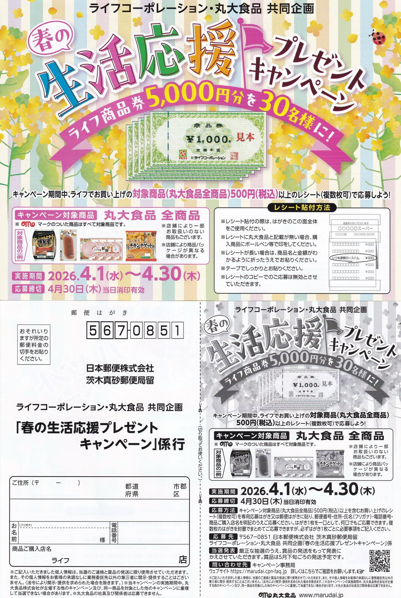 ライフ近畿圏のスーパー店頭でみつけた懸賞ハガキ一覧です。