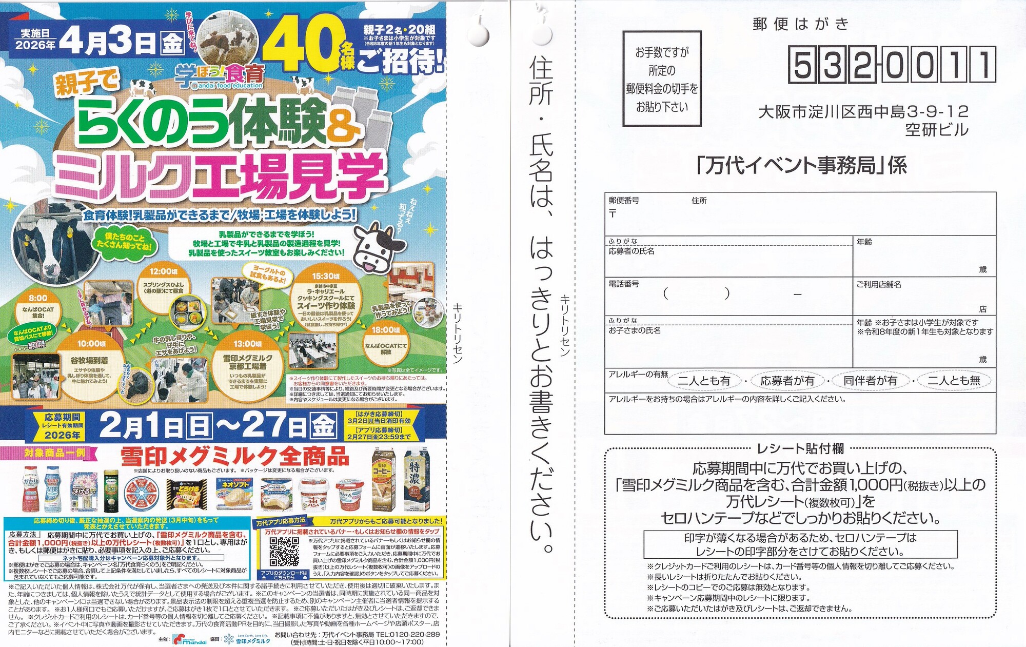 万代のスーパー店頭でみつけた懸賞ハガキ一覧です。