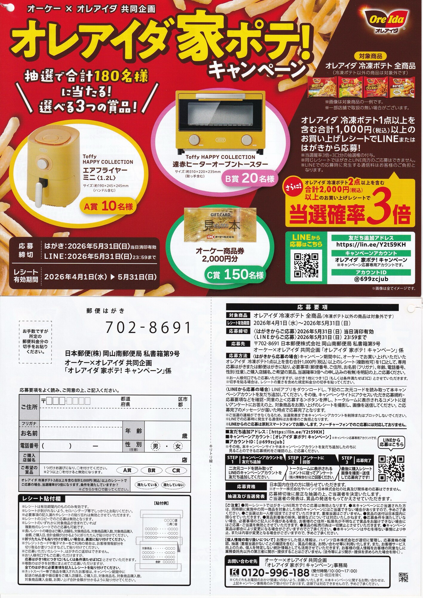 オーケー×オレアイダ 家ポテ!キャンペーン 懸賞ハガキ