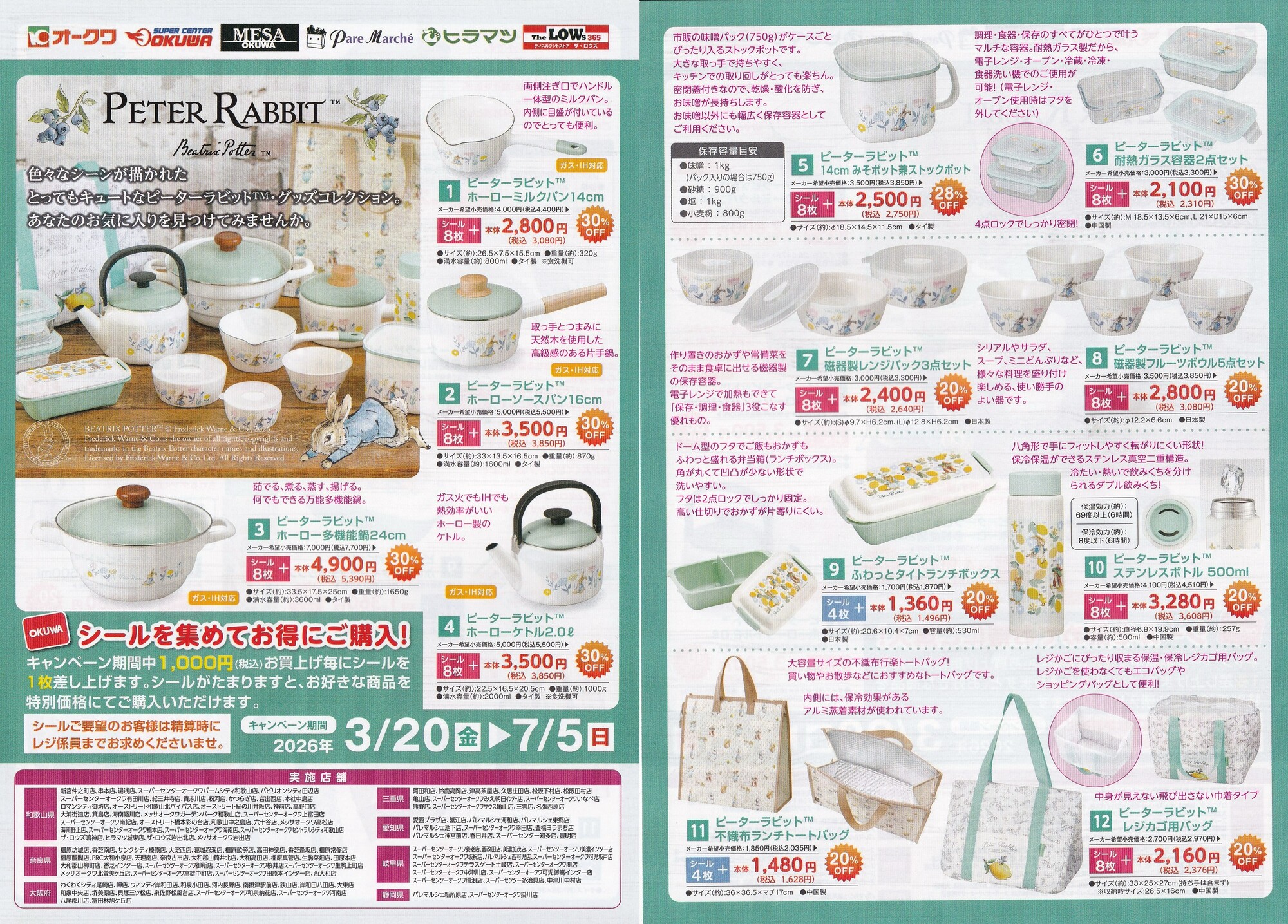 シール集めて特別価格で購入!ピーターラビット キャンペーン