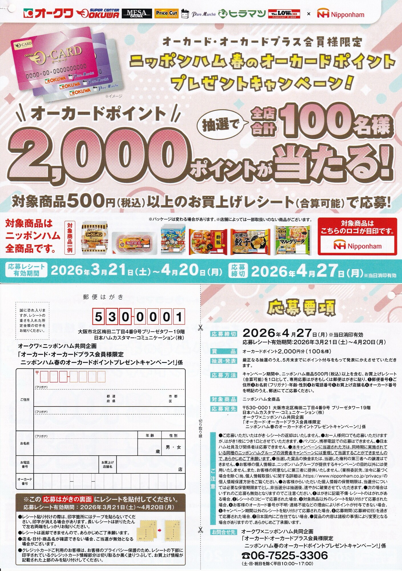 オーカード・オーカードプラス会員様限定 ニッポンハム春のオーカードポイントプレゼントキャンペーン!
